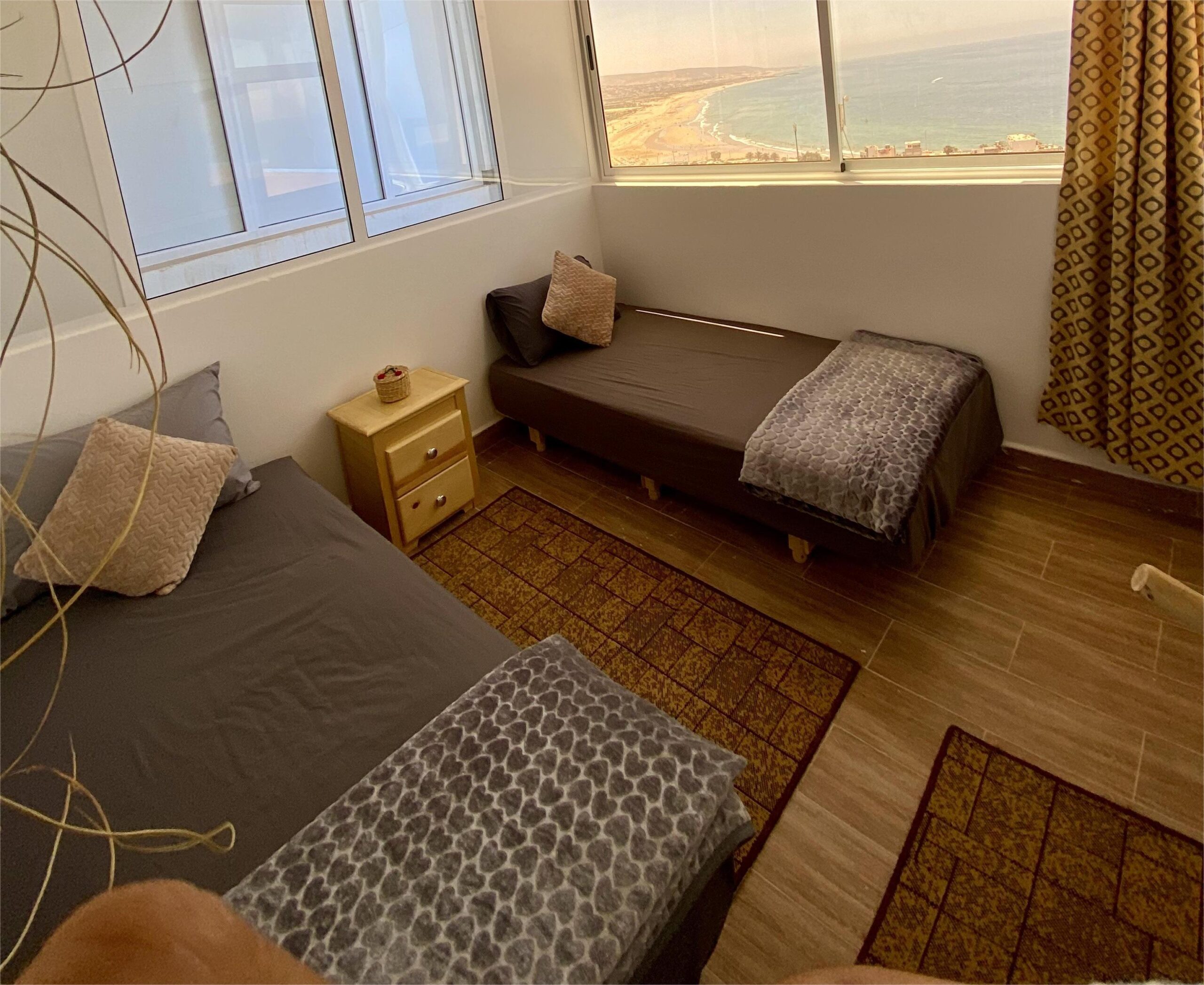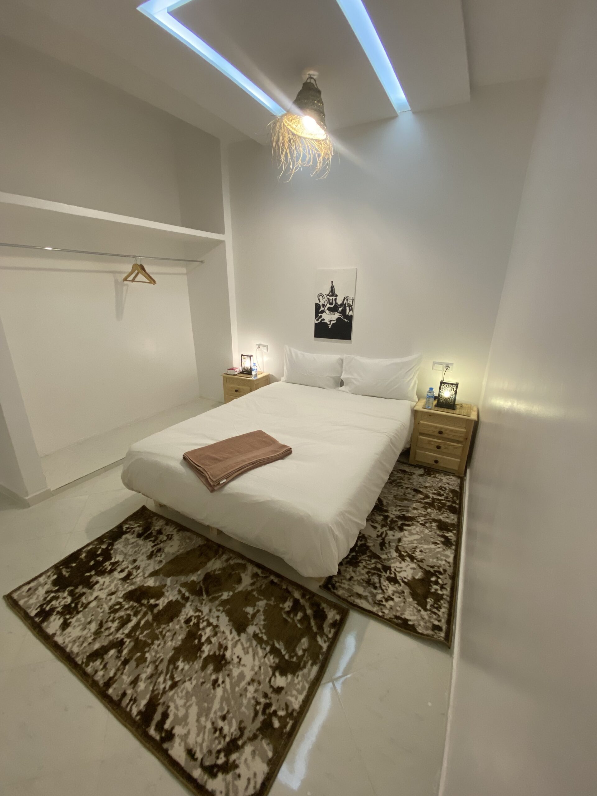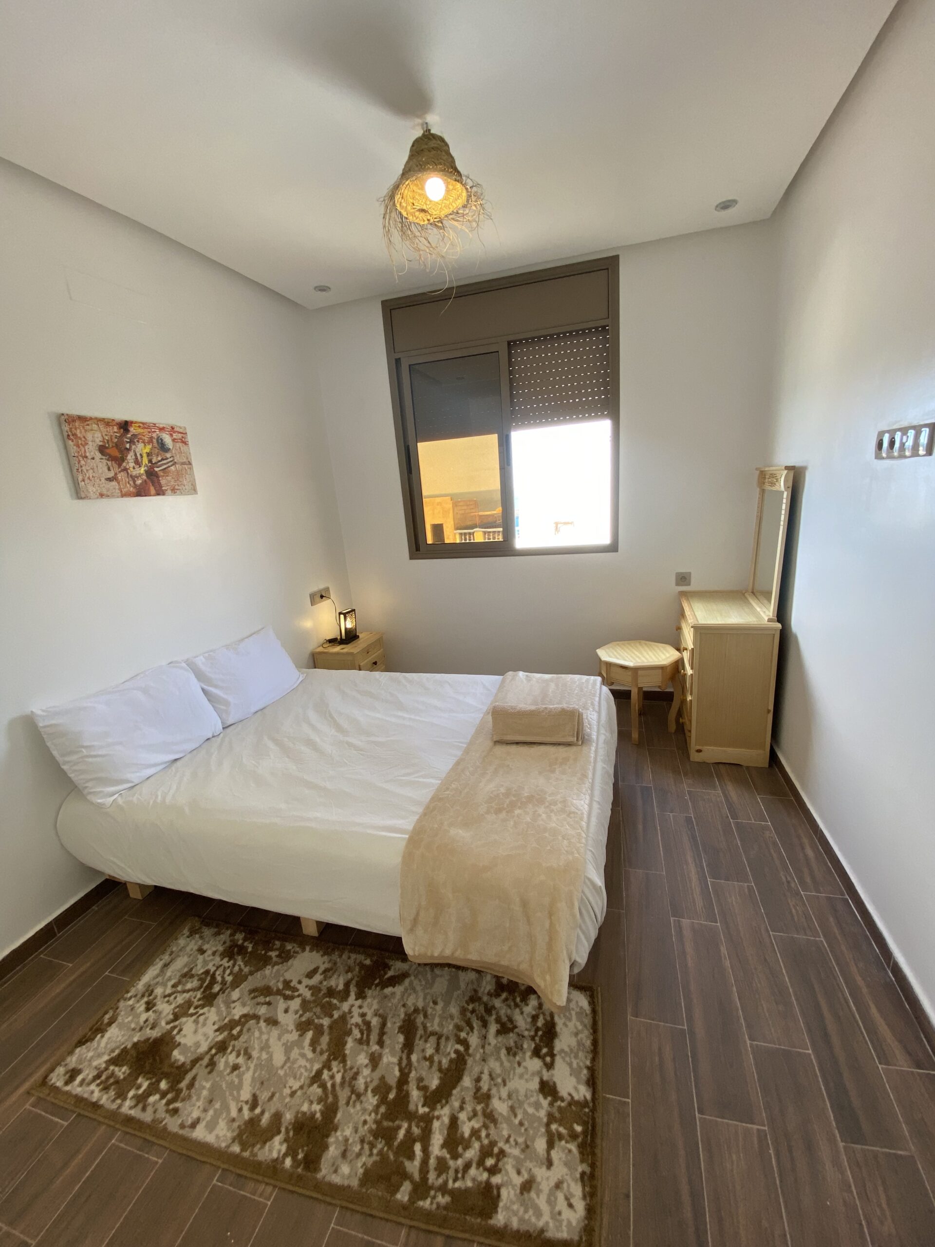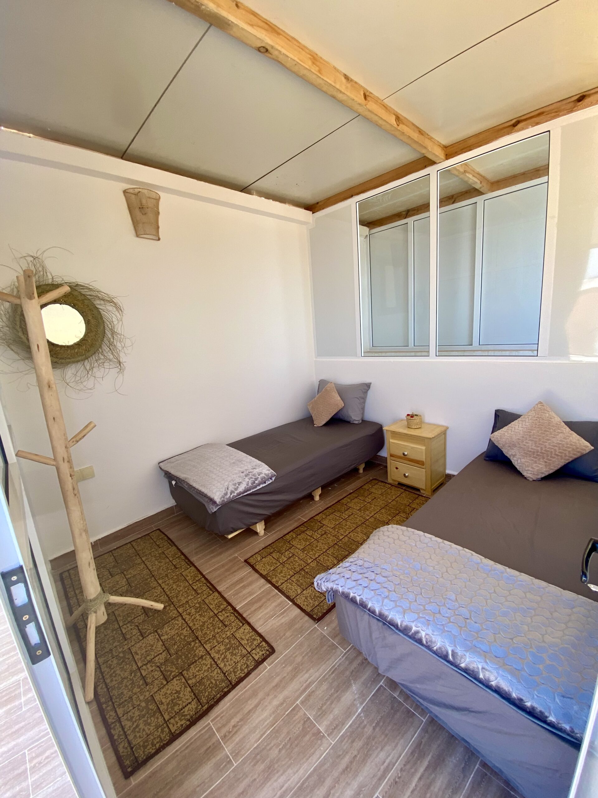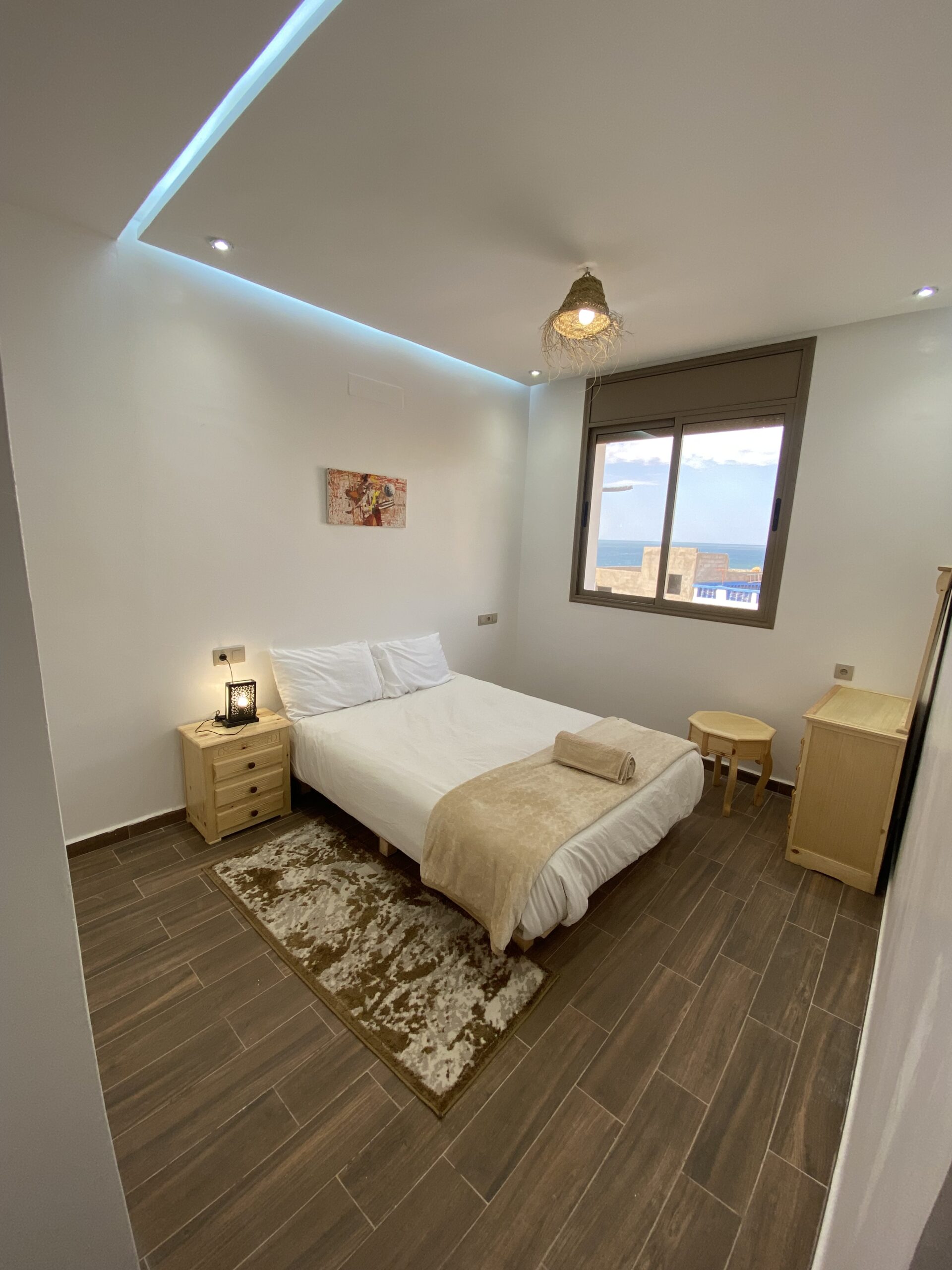 Double rooms, perfect for couples, feature comfortable beds, ocean views, and a cozy Moroccan ambiance with modern amenities.